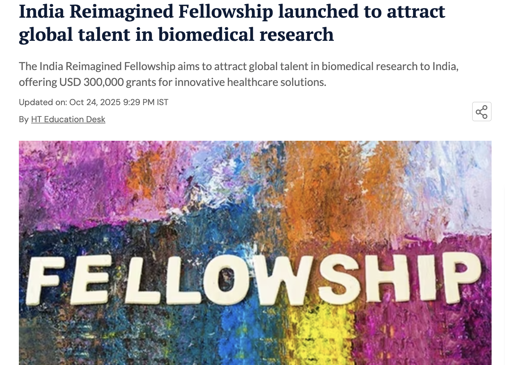 India Reimagined Fellowship launched to attract global talent in biomedical research