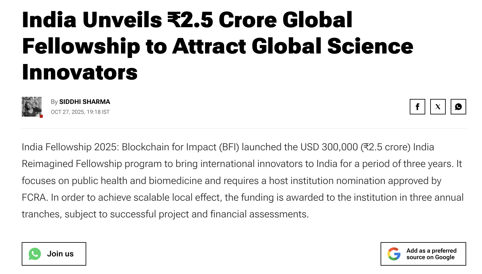 Blockchain for Impact Announces Allocation of USD 15 Million To Biomedical Research in India - Check Details