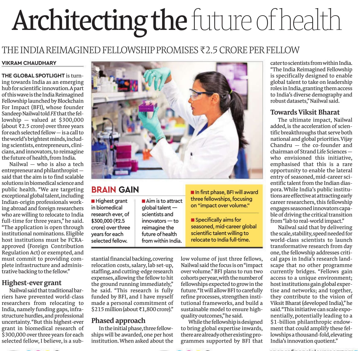 Sandeep Nailwal’s BFI BIOME Program allocates $ 15 Mn for Biomedical Research