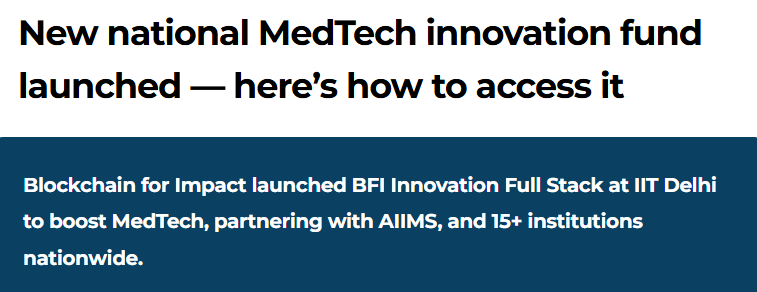 To promote and support biomedical research and innovation in the medical sector, two programs have been initiated - Medical INI and BFI- BIOME SAMARTH ( Support for Advancement in Medical and Applied Research for Transformative Healthcare).